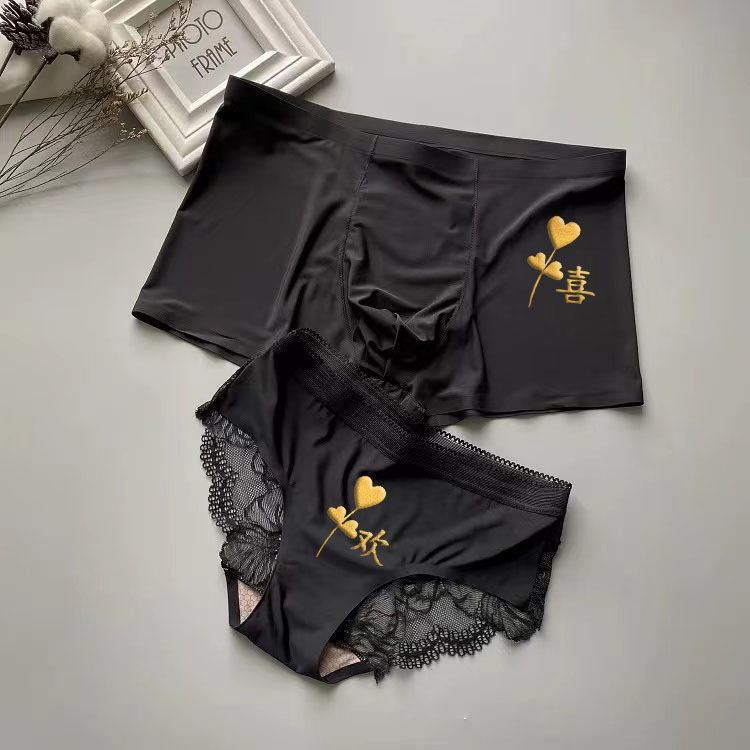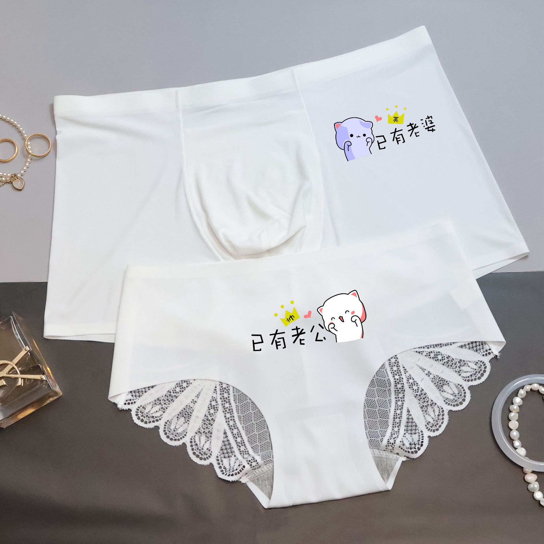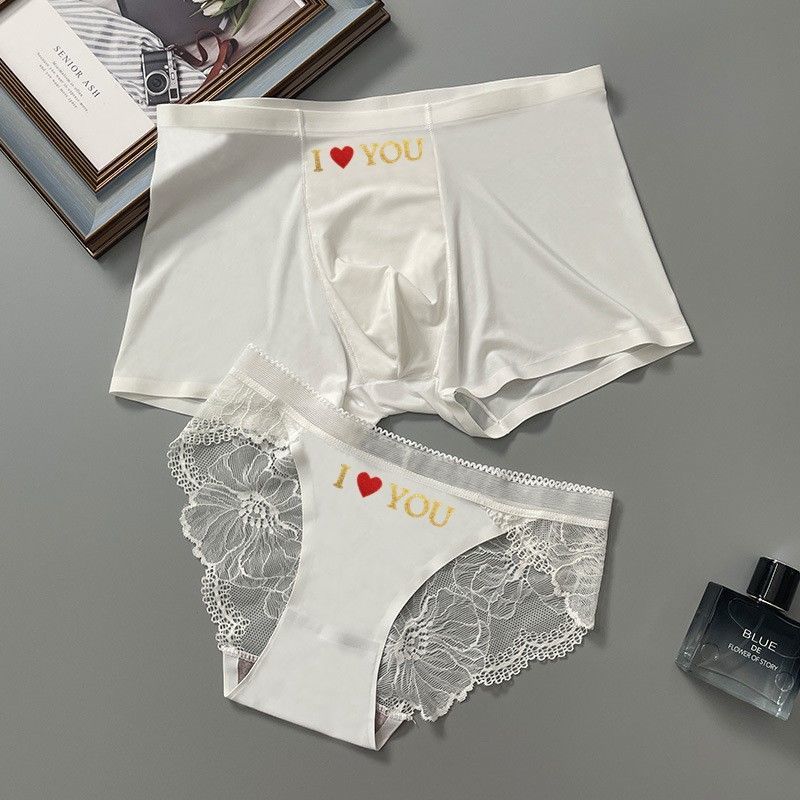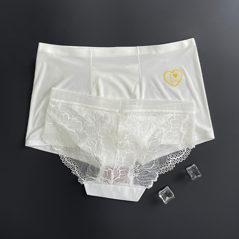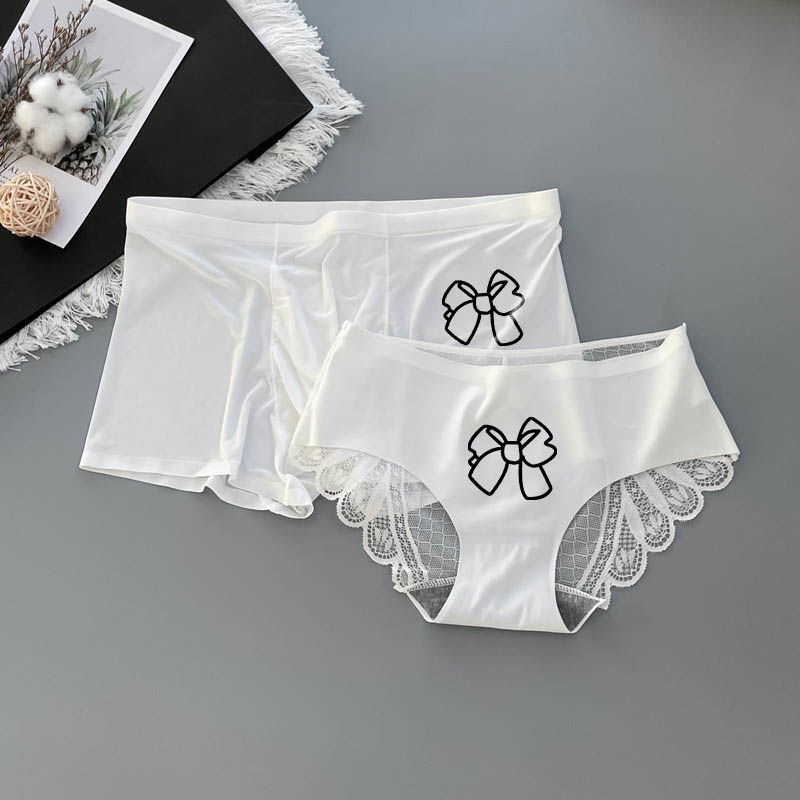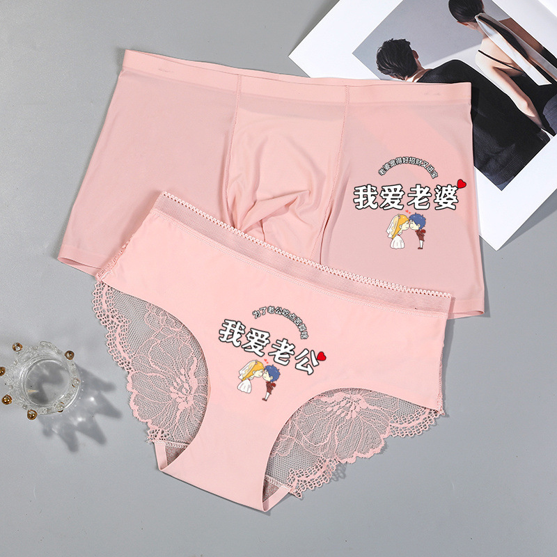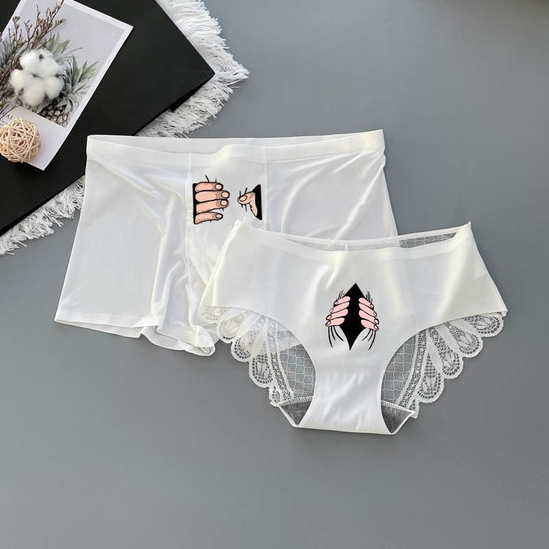 カップル下着一男一女氷糸無痕四角ズボン個性ロマンチックな模様カップルタイプ夏レース二枚
