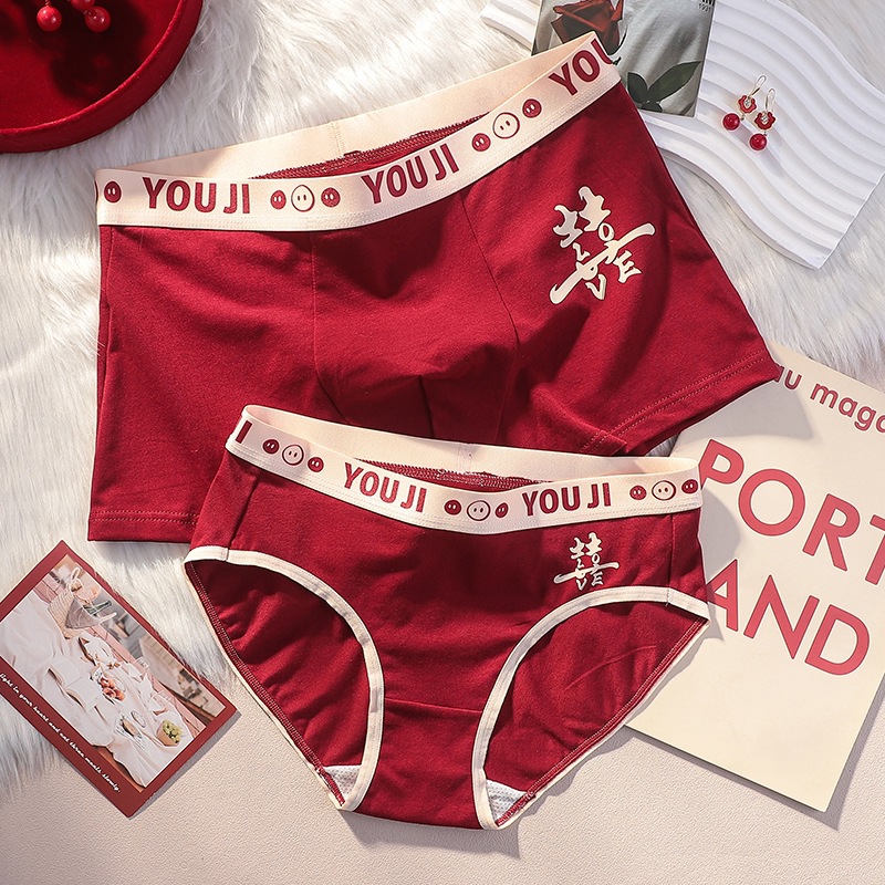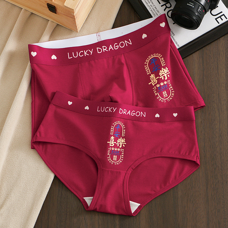 【代理】カップルパンツ2枚赤結婚本命年一男一女新婚下着セット
