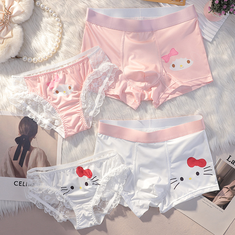 カップルの下着の夏の純綿のアニメのかわいいカップルのタイプの夏の軽くて高級なレースの男性と女性の2本の服