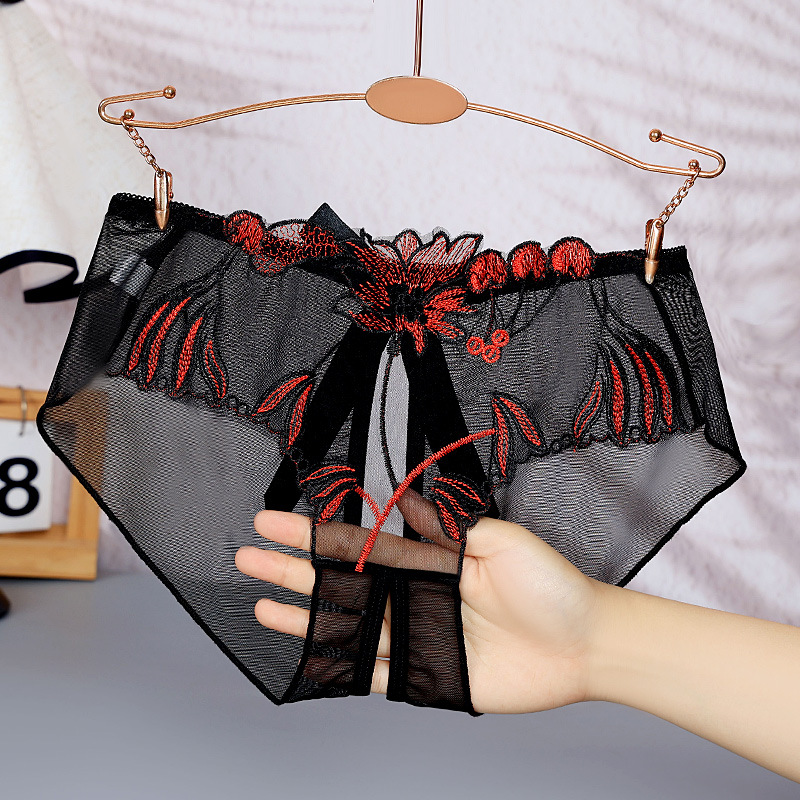 顔蓬薇メーカー卸売り半透網糸精緻刺繍下着女性軽薄通気純欲風開股ズボン838