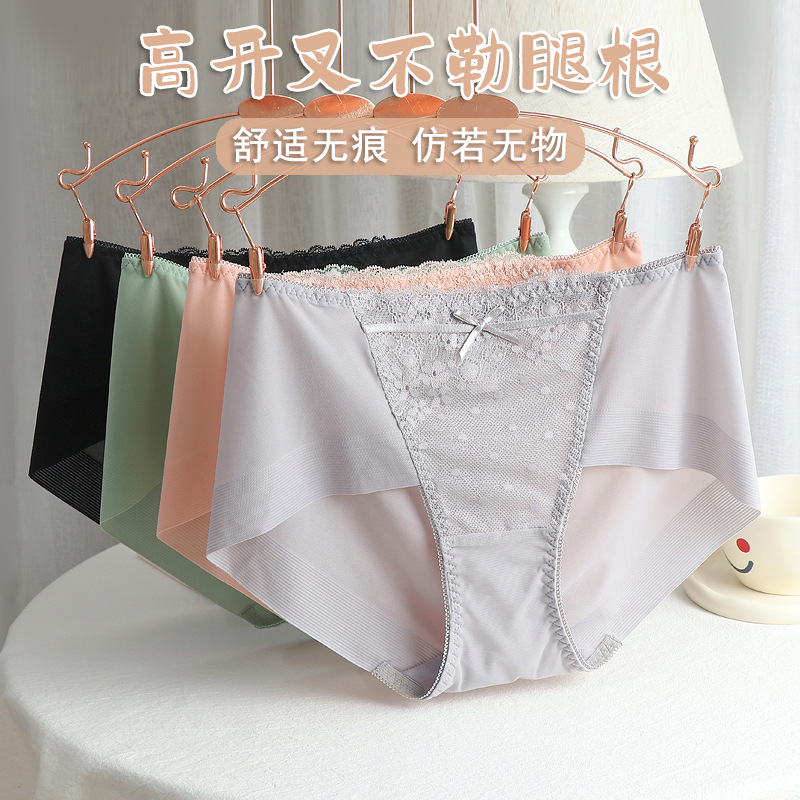 日系セクシー大サイズ下着女性レース氷糸無痕高級品質小平角ズボン春夏新作2024