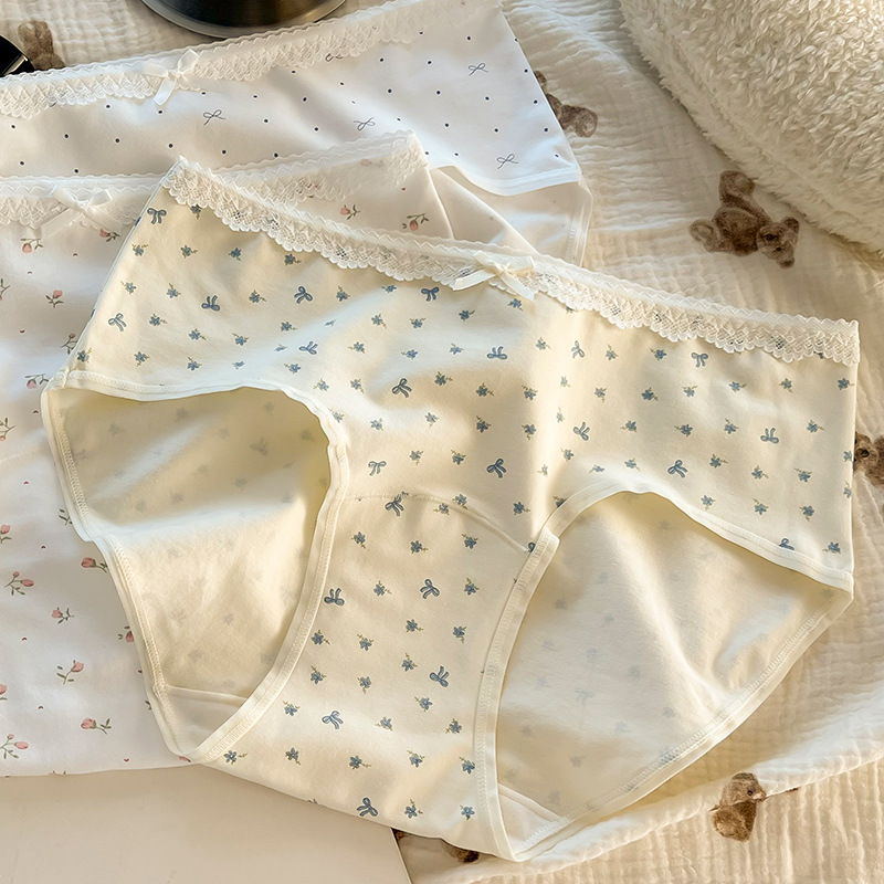 大きいサイズの甘い花柄の女の子の下着女性の夏の薄いミッドウエスト通気性のある新しい女性の快適で通気性のあるブリーフ