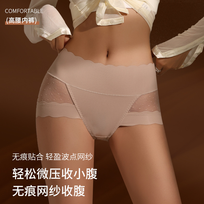 # 4018 # 女性用シームレス下着、セクシーなメッシュ純綿、抗菌ハイウエストおなかコントロールブリーフ、Douyinホットスタイル