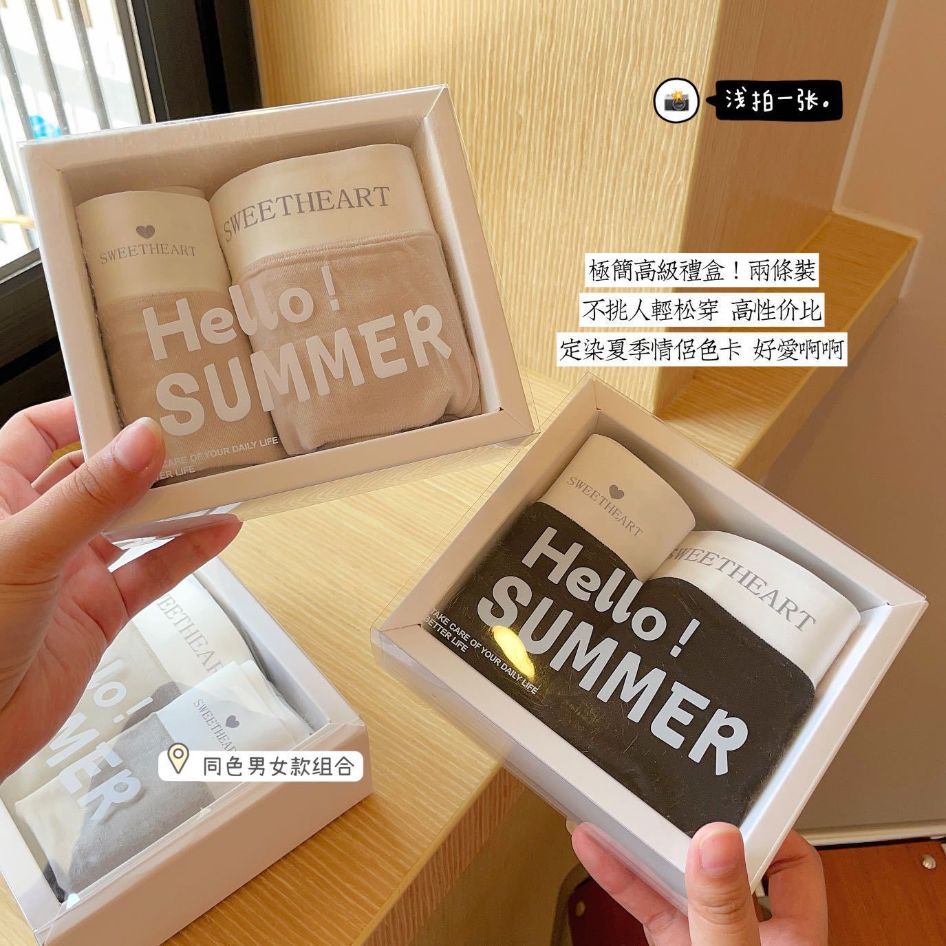韓国の純色の新型無痕カップルの下着の肌に優しい綿のギフトボックスの儀式感がロマンチックで快適で甘いプリントがシンプルです。