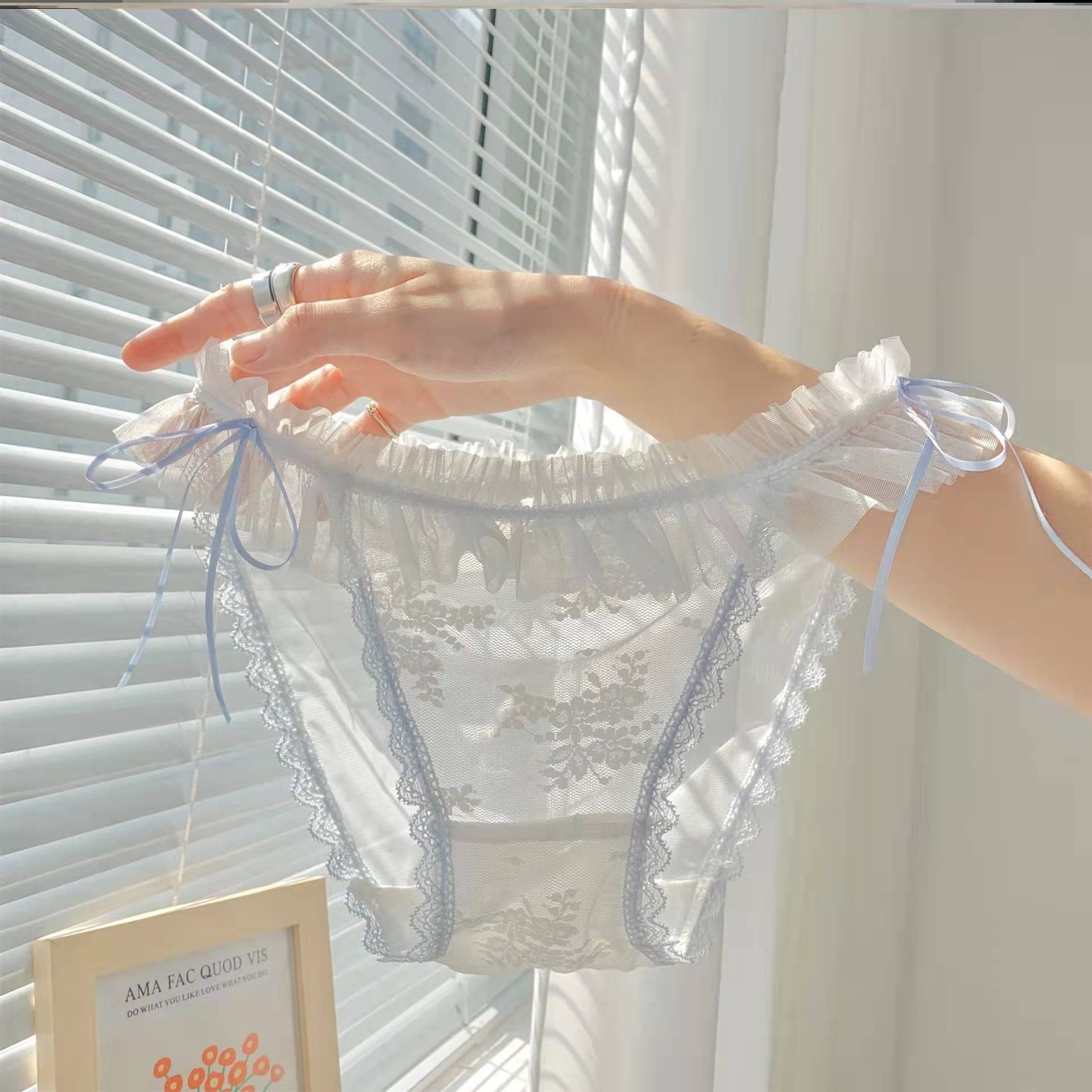 純白ミルク塩 ~ カット男甘系網糸飛辺セクシー少女下着薄手綿股純欲レース三角パンツ