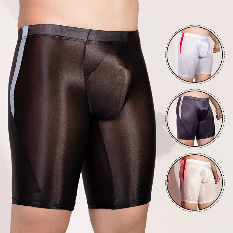 趣味下着高弾透視光沢シルク滑り肌ガードルセクシー誘惑フィットネス美体男五分レギンス