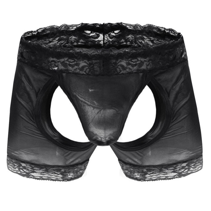男性のダブルtのズボンの透明なレースの下着の調子のセクシーな蝶結びの誘惑の騒々しい透明なtズボン