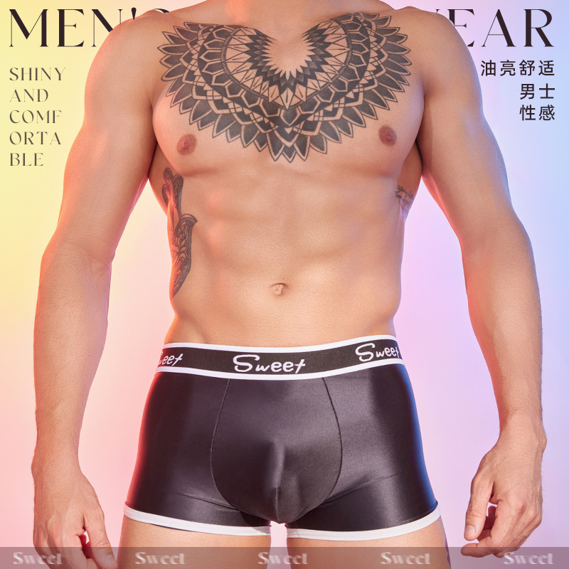 欧米の国境を越えた新型男性の熱い油の明るいシルクの滑らかな通気性の平角のズボンの激情のファッションの無痕の趣味の下着