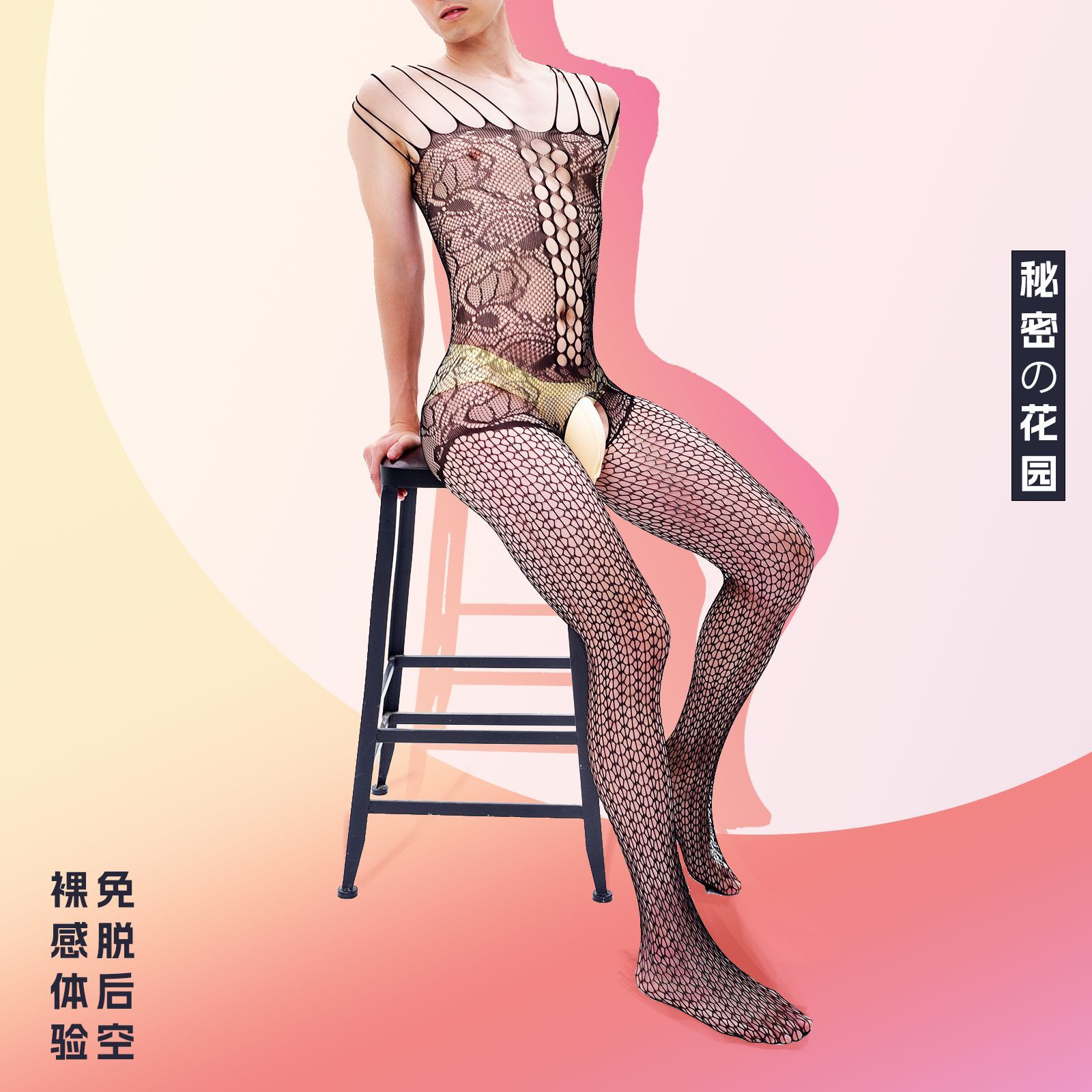 男性の趣味の下着の連体服の開段のネットの服の連体のネットの靴下の透視は透かしを透かしてセクシーな男性の同志のパジャマを透かして代行します。