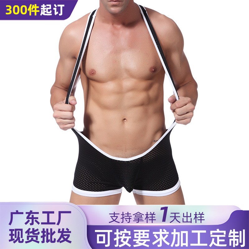メーカー直販の外国貿易でよく売れている男性の趣味下着の通気性ネットの穴のレスリング服のセクシーなパジャマの連体服fr22