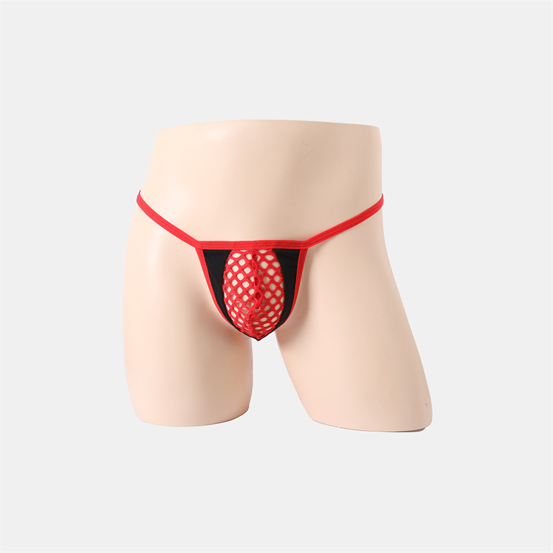 男性のセクシーな下着メーカー中空メッシュセクシーなカラーマッチング通気性 Tバックローウエスト男性下着卸売