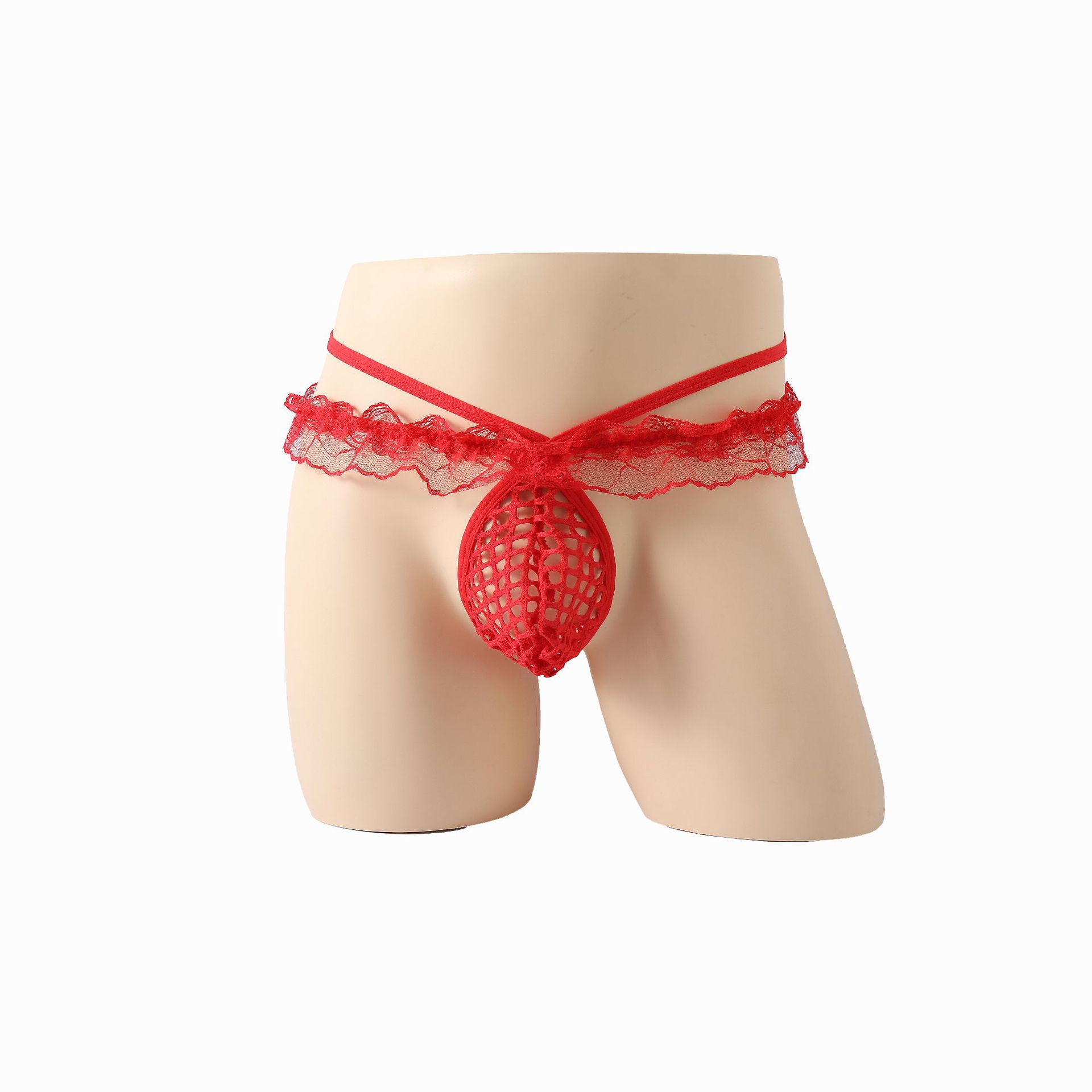 男性のセクシーな下着卸売メッシュレースステッチセクシーな下着メーカー低ウエスト中空ストラップブリーフ