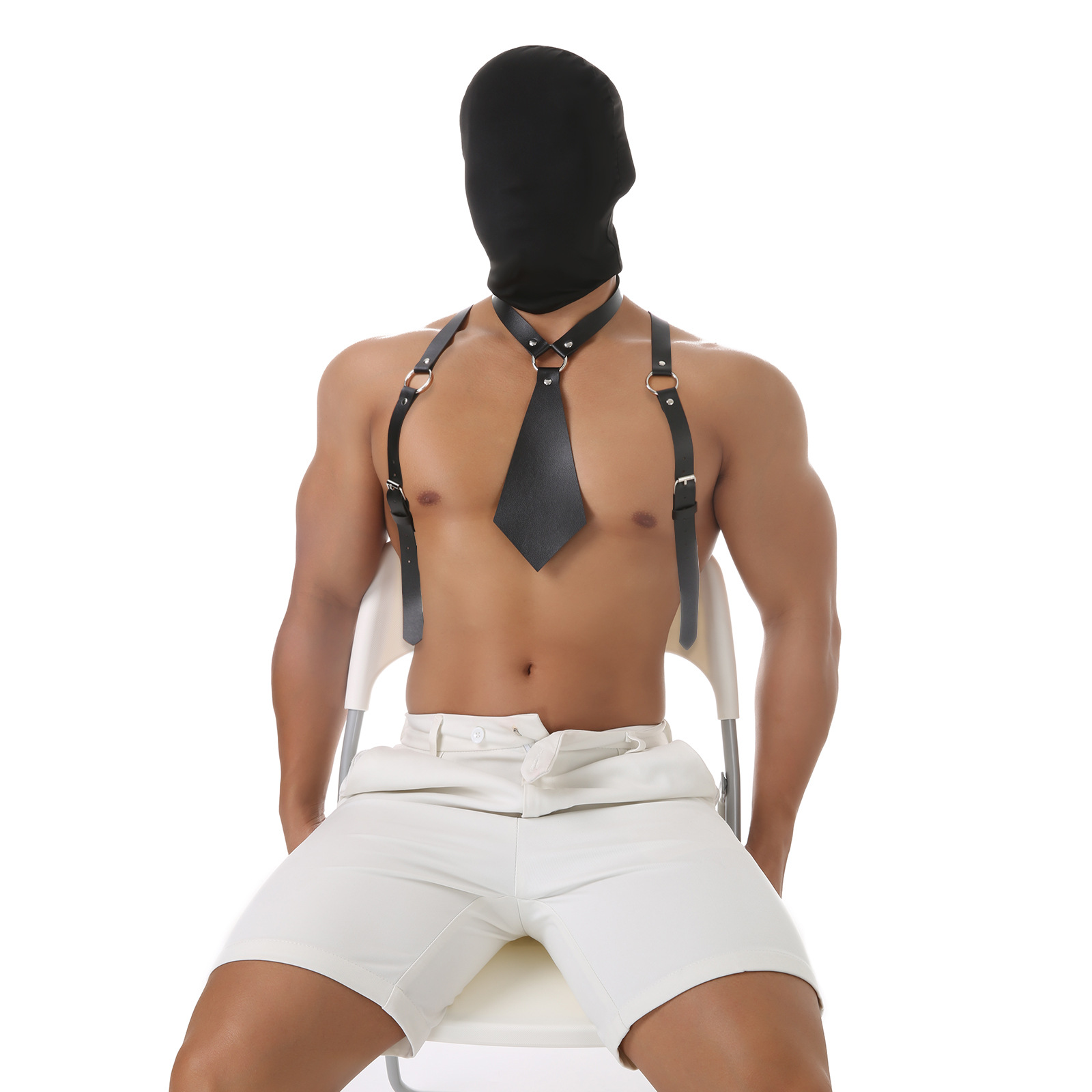 CLEVER-MENMODE フルマスク ブラックアイスシルク フード 模造革ネクタイ BDSM コスプレ衣装