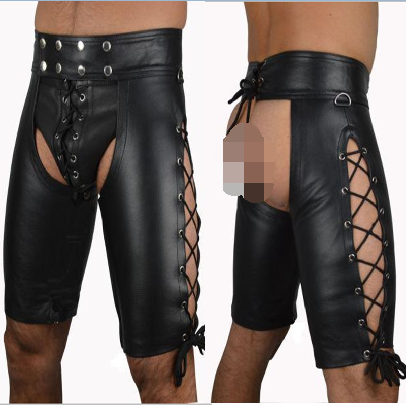 現物の外国貿易の商品の供給源欧米の情緒の下着のセクシーな男性のタイトな股の皮の半ズボンのシミュレーションの皮のズボン