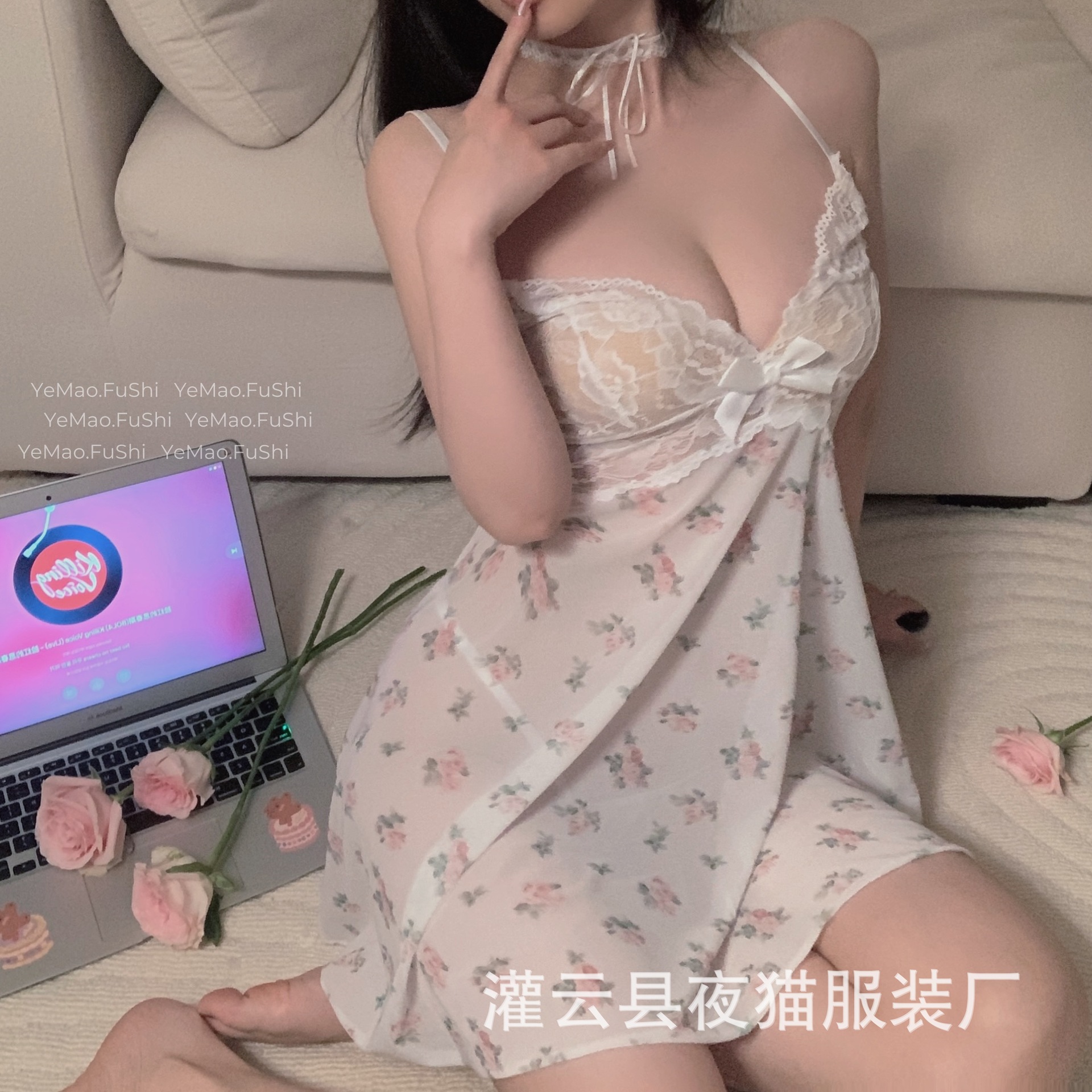 趣味下着ネット糸純欲風砕花ワンピース女子セクシーレースのストラップは誘惑パジャマ卸売りを免除する