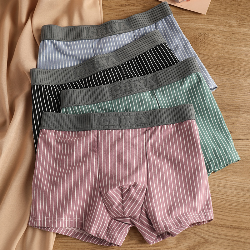 新型純綿男性下着男性平角ズボンストライプ中腰男性通気性男子学生四角ズボン