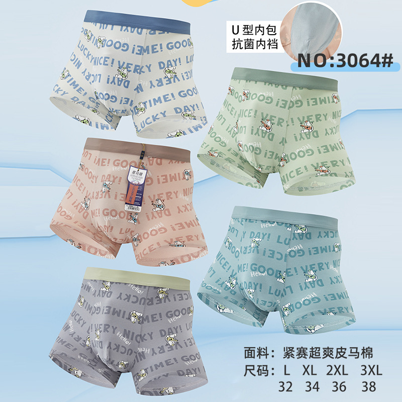 メンズパンツ3Dプリントマッコットプラスモーダルファッション通気性メンズ平角パンツ万シリーズ
