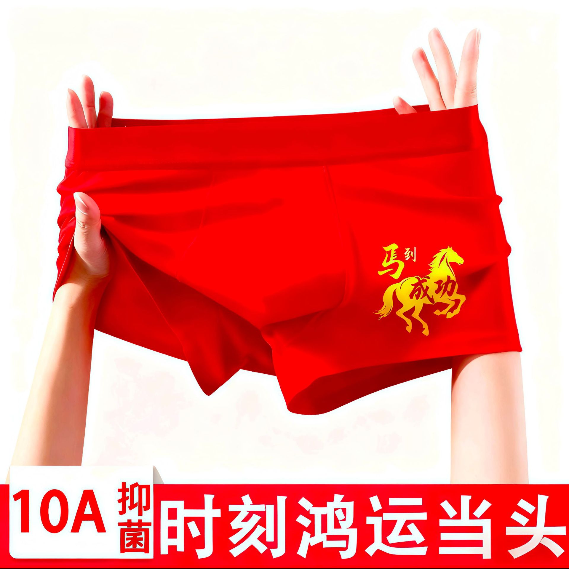 新作の干支年用メンズ赤い下着、ボクサーパンツ、通気性のある四角パンツ、ミッドウエスト、結婚式用ニット綿メンズ下着、赤色