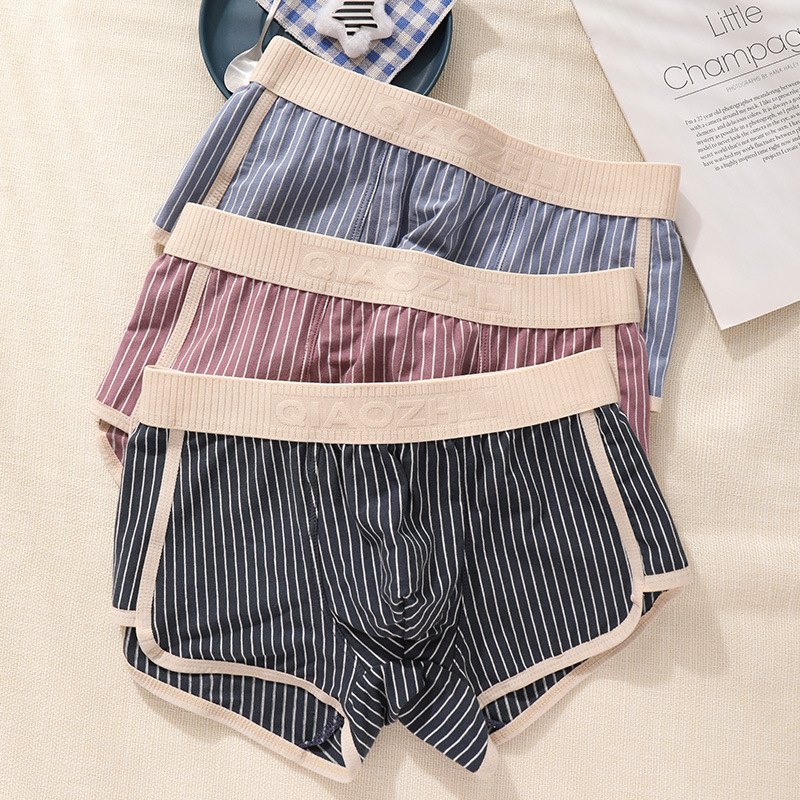 パンツ男性純綿男性平角ズボンストライプ中腰通気運動大サイズファッション男性学生四角パンツ