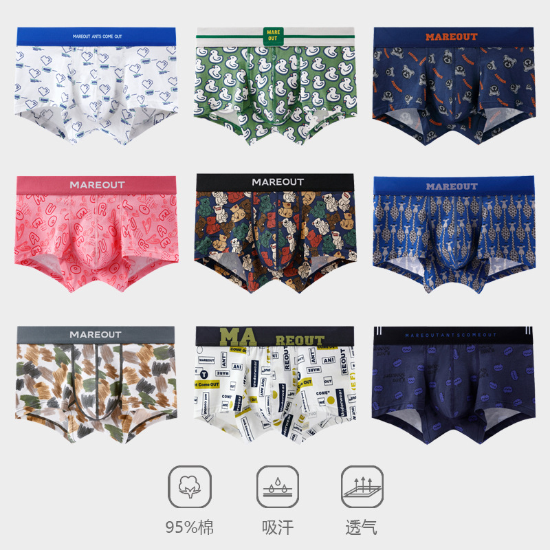 男性下着純綿通気性ティーン下着ボクサーミッドウエスト四隅漫画ファッションブランド綿パンツ