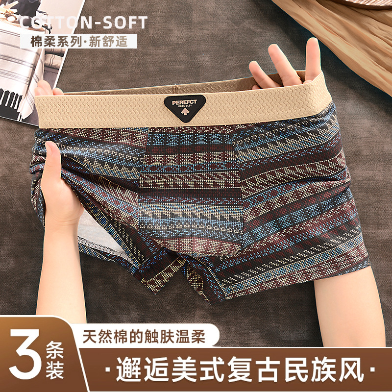 新しいレトロプリントエスニックスタイルメンズ下着純綿抗菌インナー通気性ボクサーパンツパーソナライズされたプリントボクサーパンツ