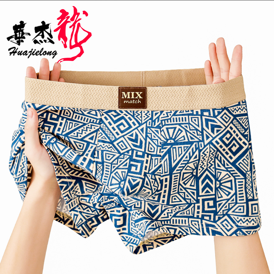 綿質の新型の華傑龍の男性の下着のプリントの卸売りの中で腰の男性の大きいサイズの通気性の男性の平角のズボンは代行することができます。