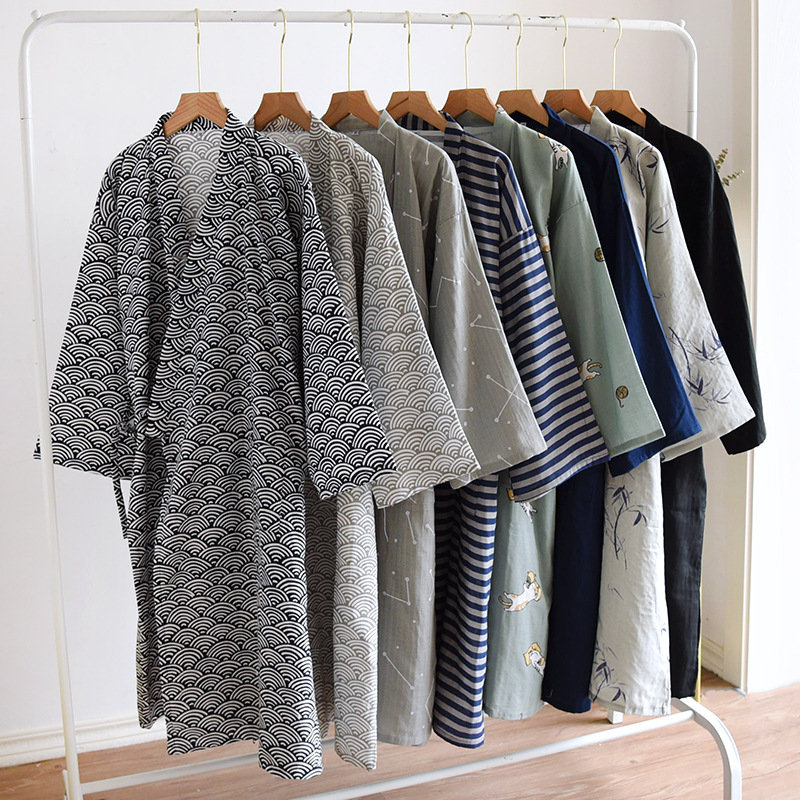 日本式の純綿ガーゼの浴衣の男性の大きいサイズの着物のパジャマの春夏の薄いパジャマのひもの浴衣の汗蒸しの温泉服
