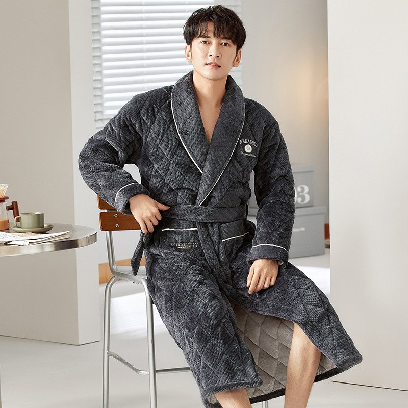 パジャマの男性パジャマは冬の三階に厚いベルベットの長いフランネルが綿のバスローブを挟んで秋冬の暖かい朝の服を着ている