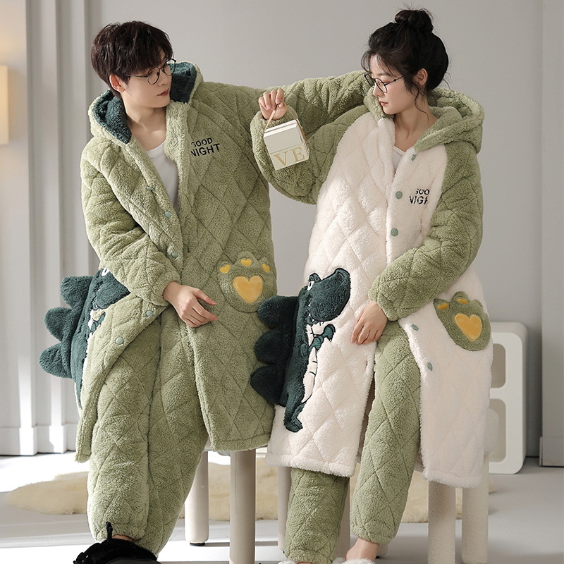 秋冬の厚手のバスローブ女性の冬のベルベットの男性の帽子付きパジャマカップルの帽子付きフランネルのパジャマ
