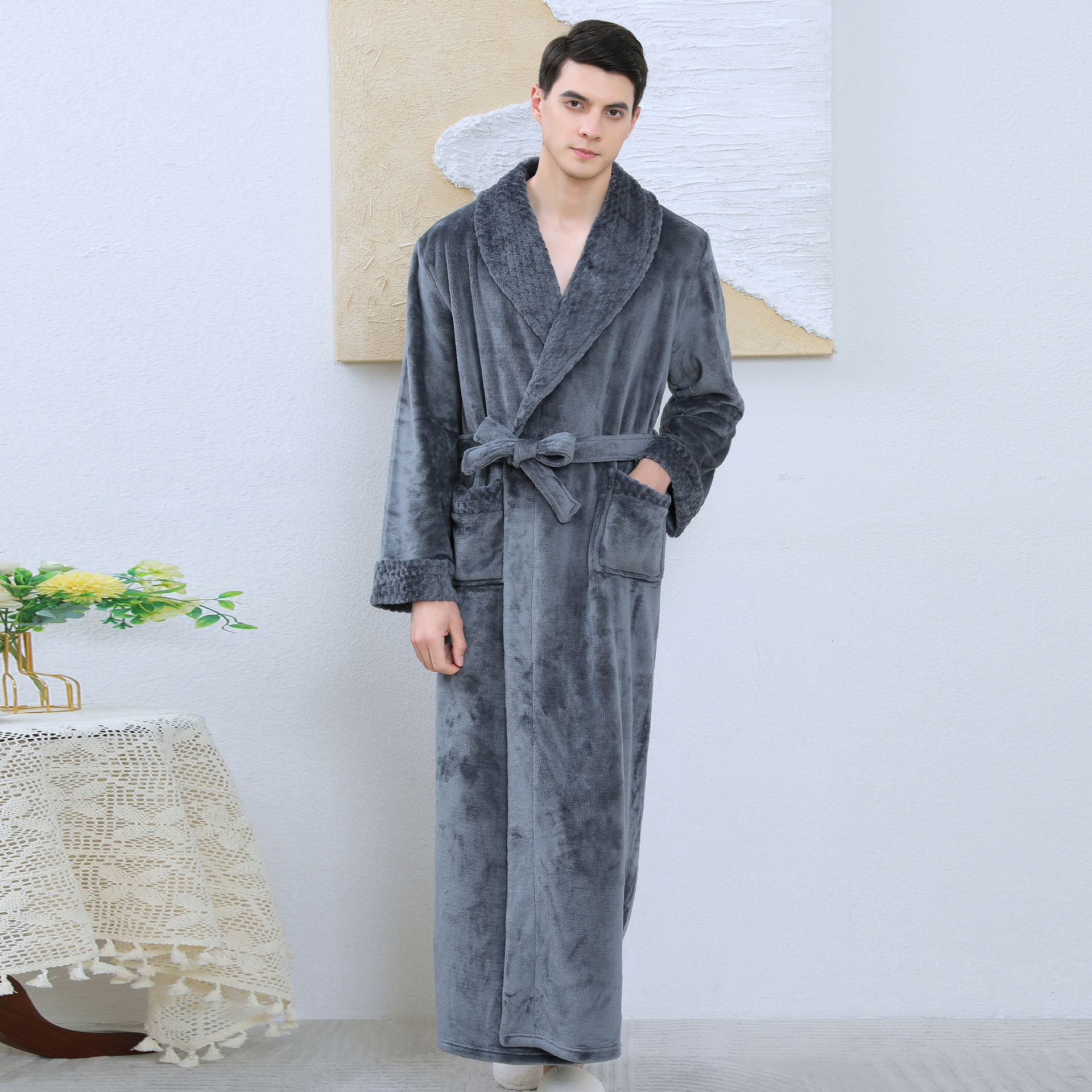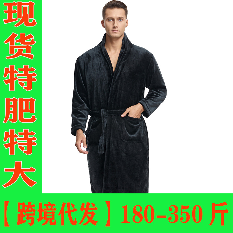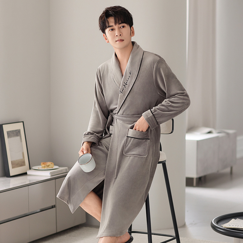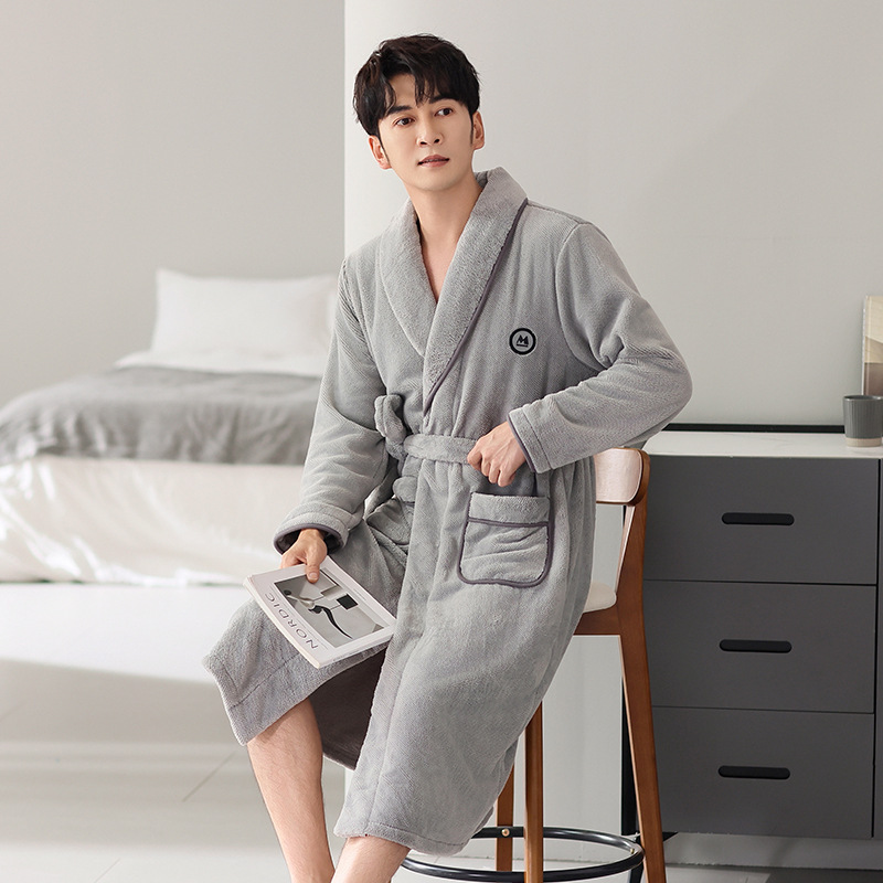 Shopify フランネルナイトガウンメンズ春秋薄手長袖バスローブコーラルベルベット大きいサイズローブ秋冬パジャマ
