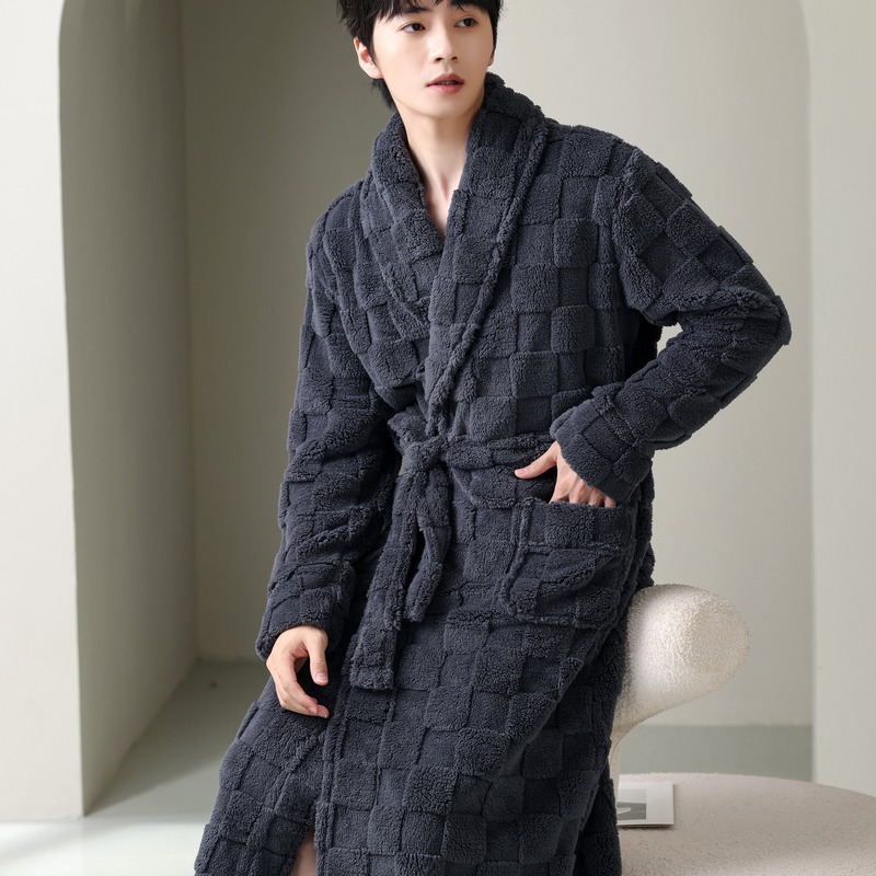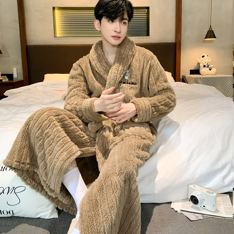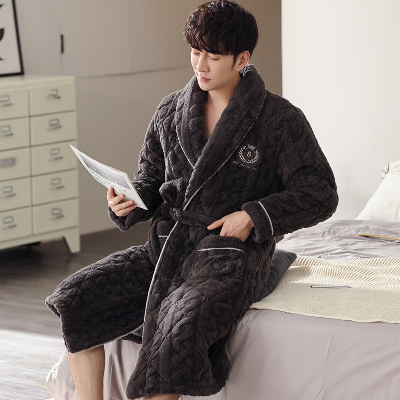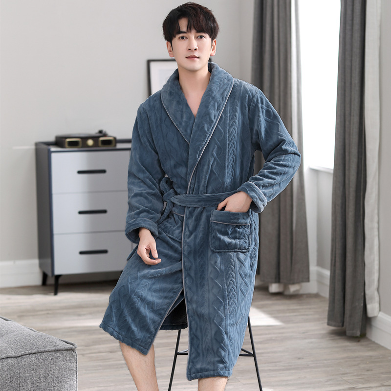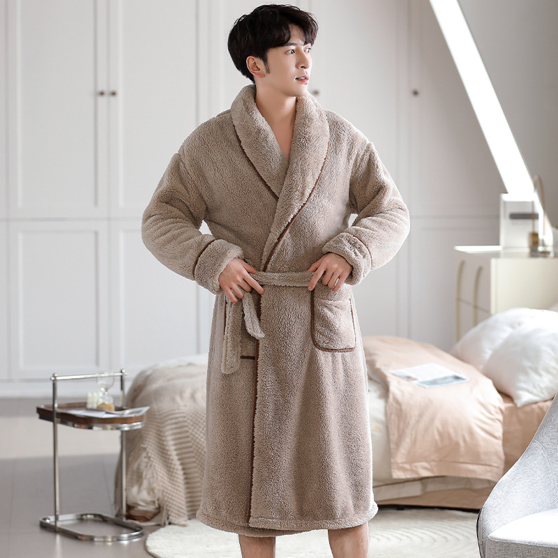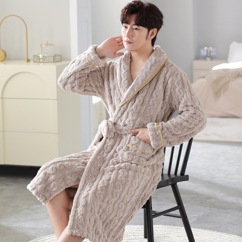 寝衣男性冬のサンゴの毛が厚くて、秋冬の長衣男性用パジャマ冬のフランネルの長尺バスローブ