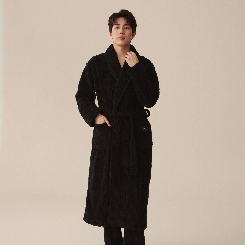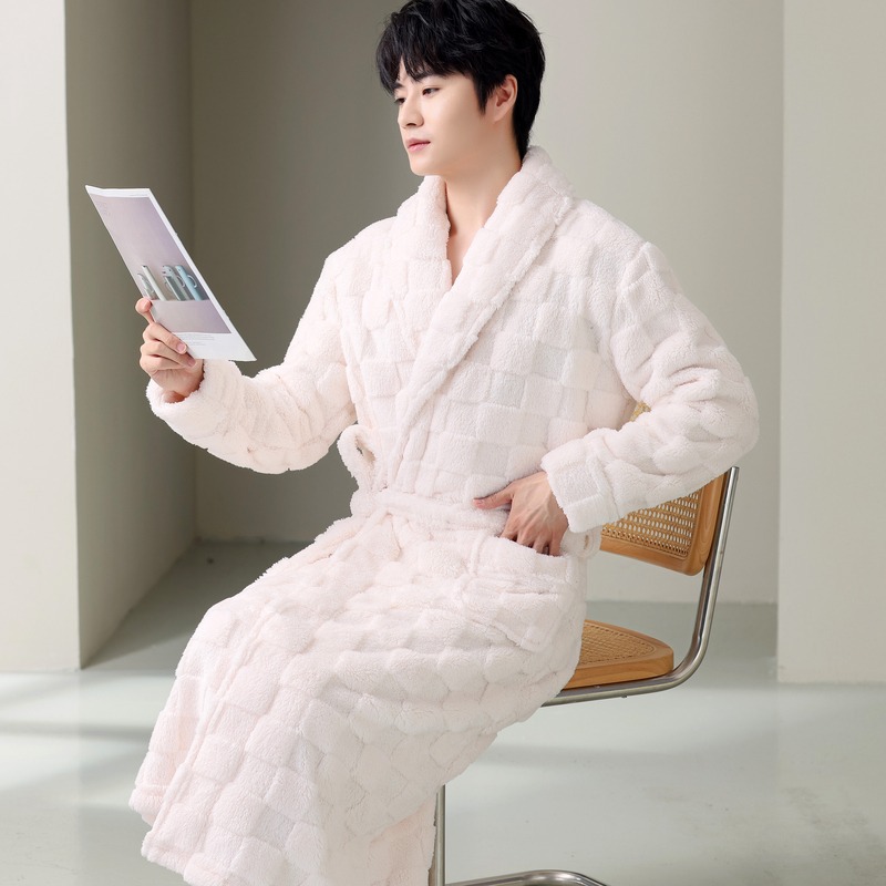 【質感海島パイル】パジャマ男性寝衣秋冬スタイル冬サンゴパイル保温フランネル長型バスローブ