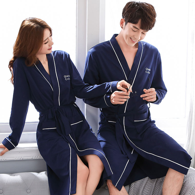 春と秋のカップルのパジャマの女性の長袖100% 綿の長い夏のバスローブの男性のパジャマの朝の服の薄いタイプ