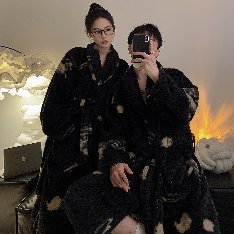 島風ベルベットカップル用ナイトガウン 秋冬2024 両面薄手ベルベット 厚手保温バスローブ 男女兼用 モーニングガウン セクシーバスローブ