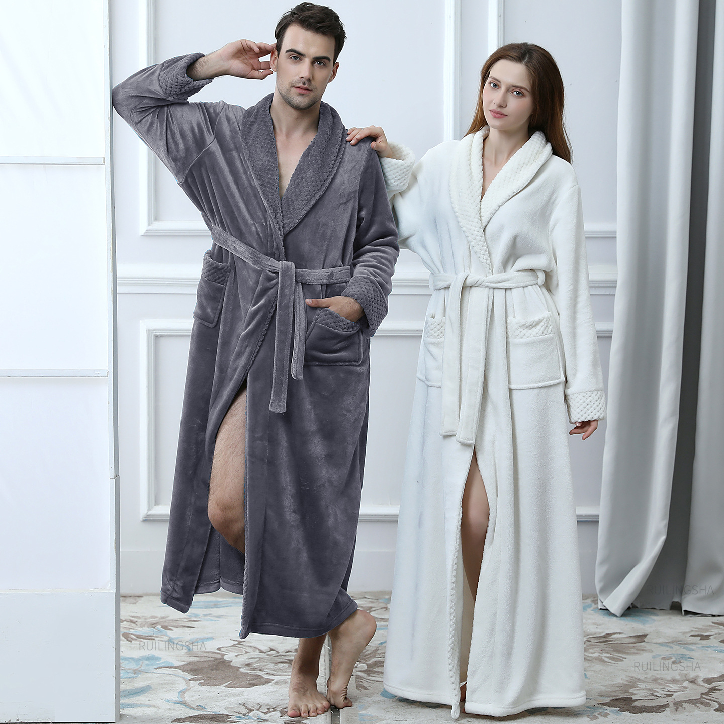 バスローブ フランネル ホテルスタイル ホワイト 春と秋 大きいサイズ カップル レディース ナイトガウン 秋と冬 メンズ コーラルベルベット パジャマ 屋外で着用可能