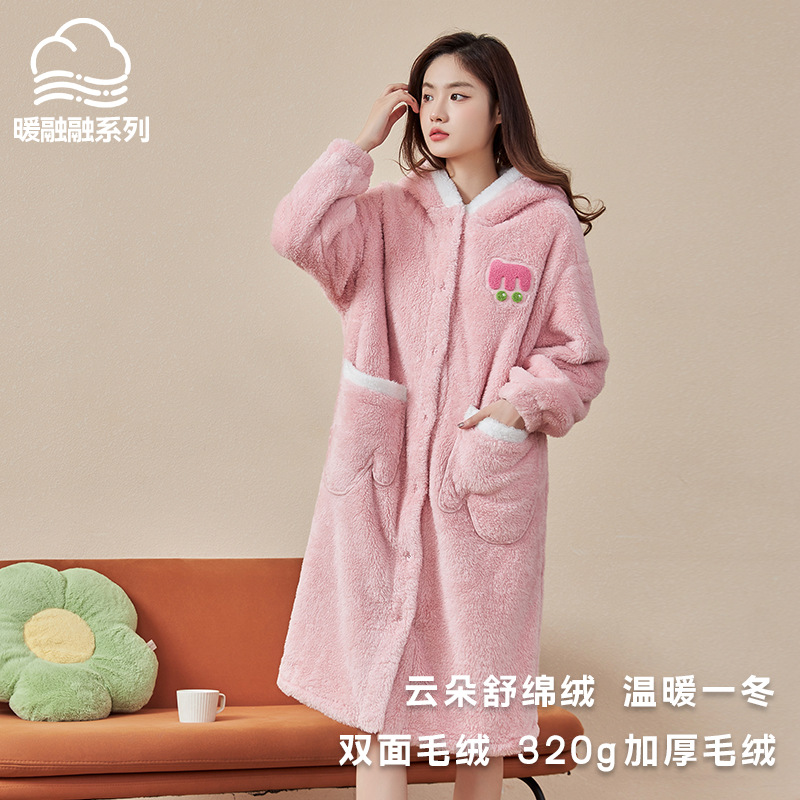 &厚くて長いフランネルカップルナイトガウン、女性用冬用パジャマ、バスローブ、男性用秋用コーラルベルベットホーム
