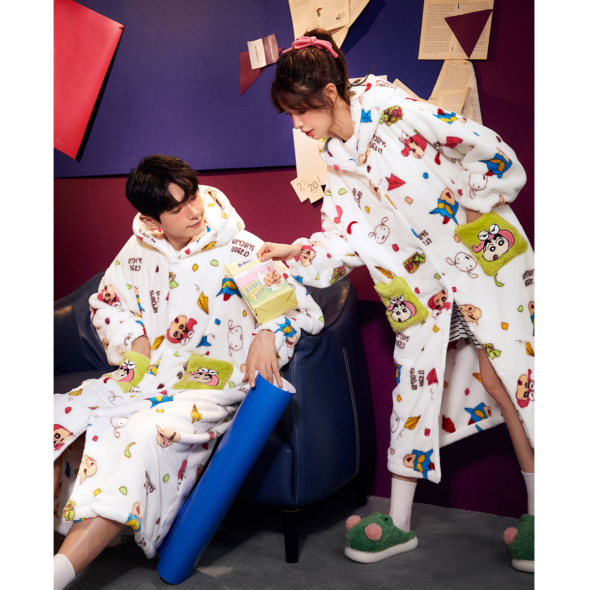 潤母【蓄熱タイプ】クレヨンしんちゃんカップルパジャマ女性秋冬ベルベットパジャマ家の服男性用