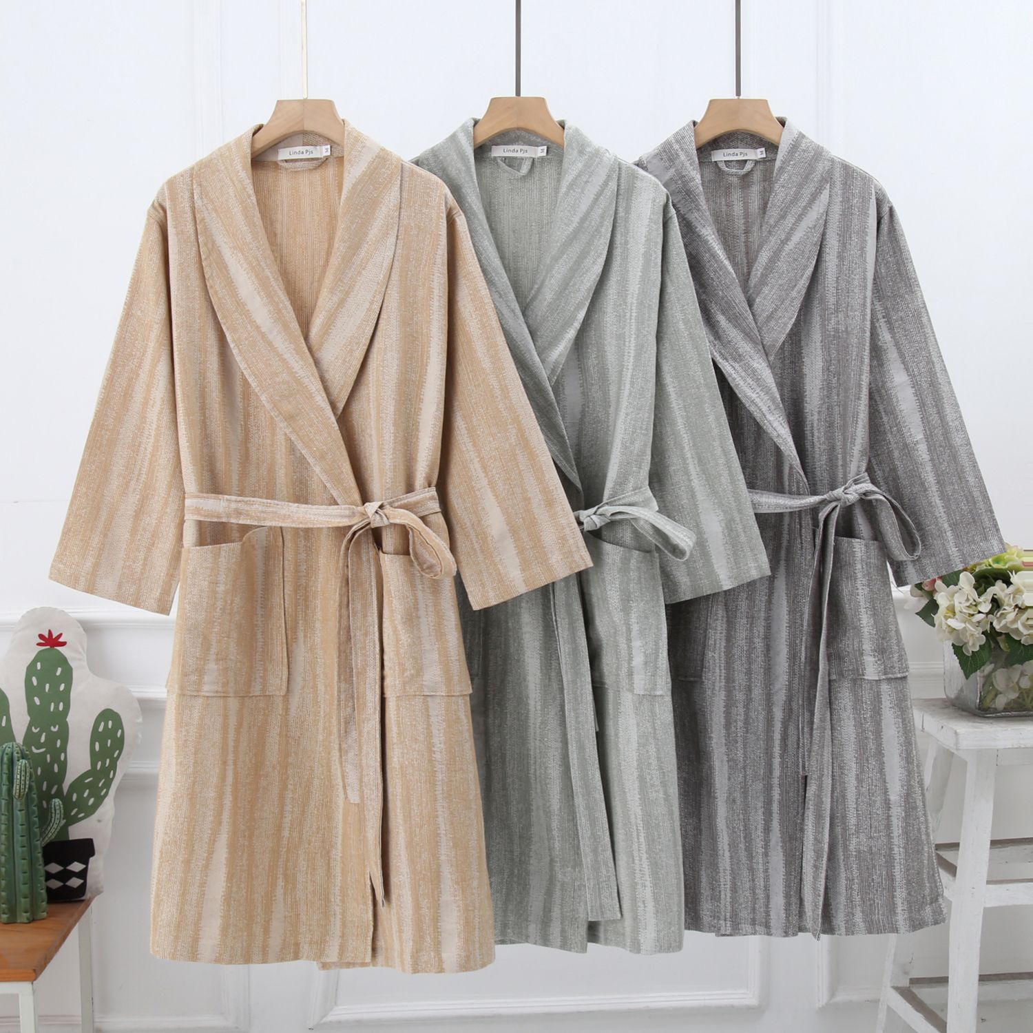 純綿ジャカードメンズバスローブ純綿二層ガーゼ和風着物ナイトガウンバスローブホームウェアワンピースナイトガウン