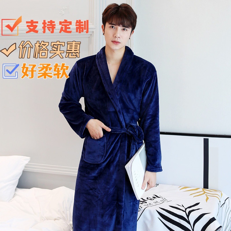 320グラム男性コーラルベルベットの寝衣冬は保温長型を厚くして、寝衣フランネルの男性スポット卸売りを着ることができる