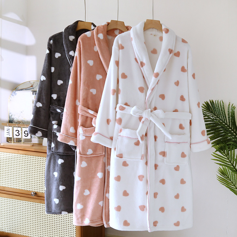 工場現物ナノベルベットホテルのカップル寝衣男性フランネルのバスローブパジャマ女性サンゴのベルベットの厚い中長さ