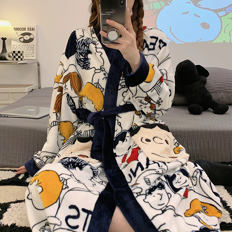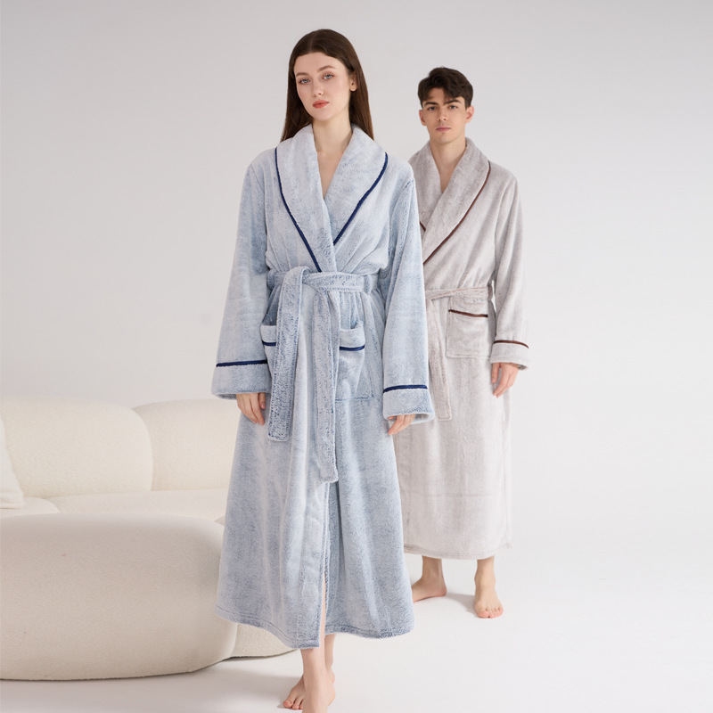 アマゾン秋冬フランネルナイトガウン 厚手ロング丈 カップル向け 男女兼用 コーラルフリースバスローブ ホームウェア