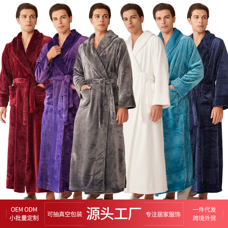 2024冬の新型男性はフランネルのバスローブを厚くして、欧米のロングタイプの国境を越えたホテル秋冬の寝衣男
