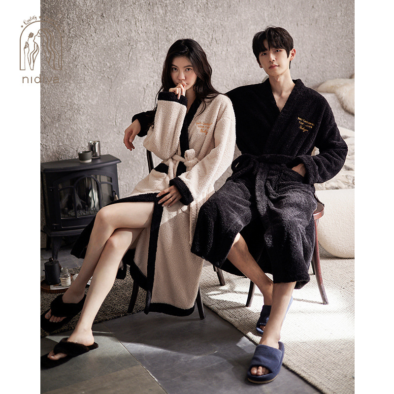 ニディヤの新しいカップルのパジャマのパジャマの女性の冬の珊瑚の絨毯の中で長い版のファッションの男性の簡単なバスローブの家の服