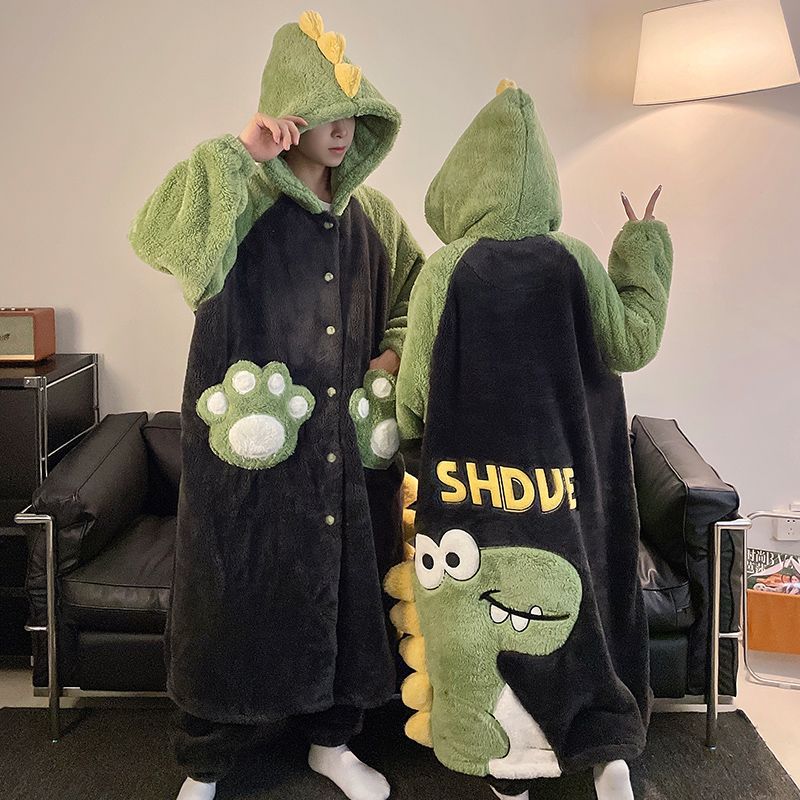 小乳龍冬連体パジャマ女性アニメ動物かわいい帽子とベルベットの厚いカップルのパジャマ家服男