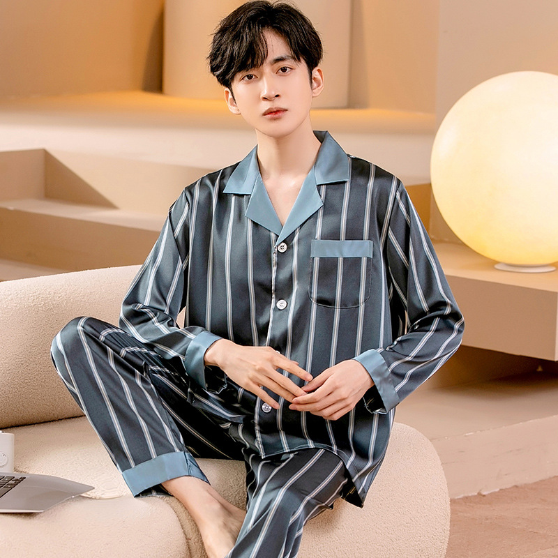 パジャマ男性春秋シルク四季型氷糸男性長袖夏薄型シミュレーション糸家庭服セット