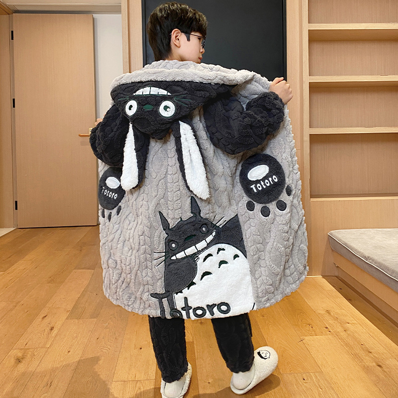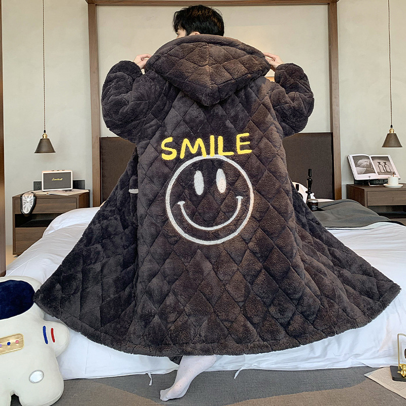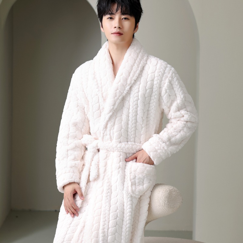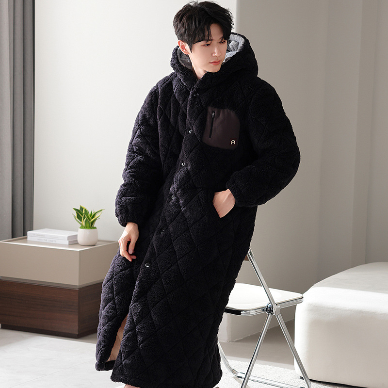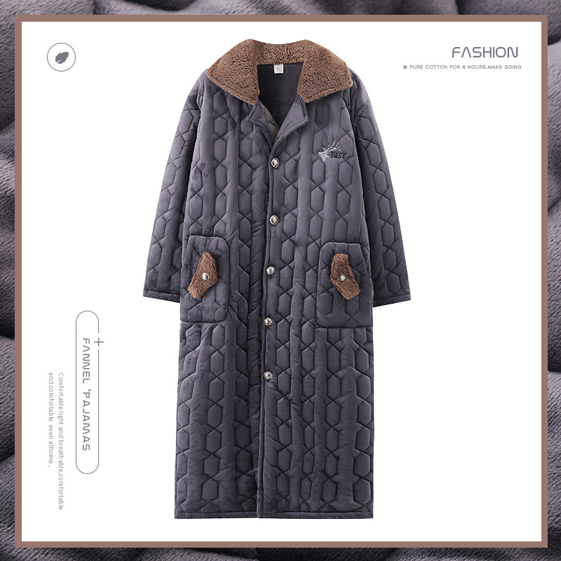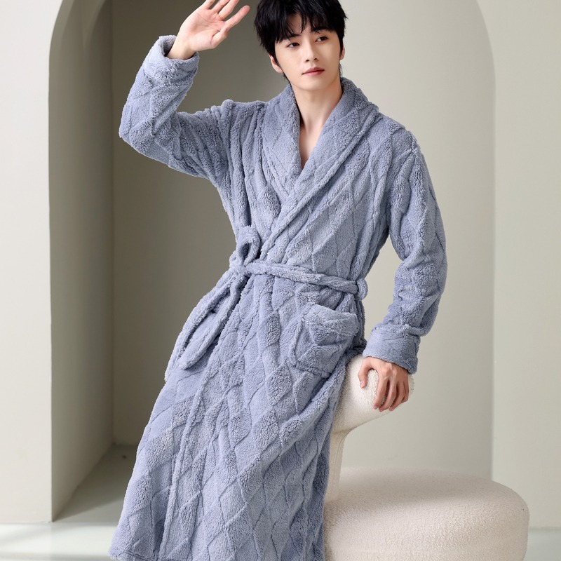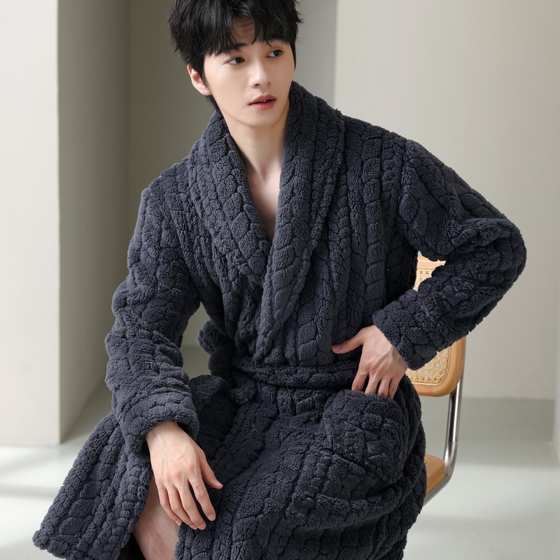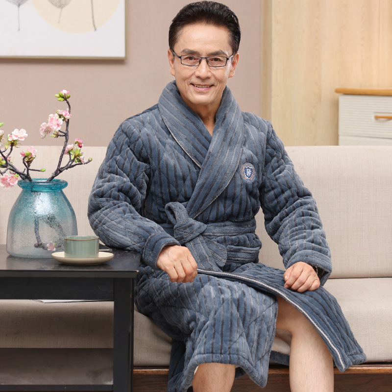 2024新型寝衣男性は冬に中長タイプのサンゴのベルベットを厚くして綿とベルベットを挟んで保温した浴衣の冬の家の服を着る