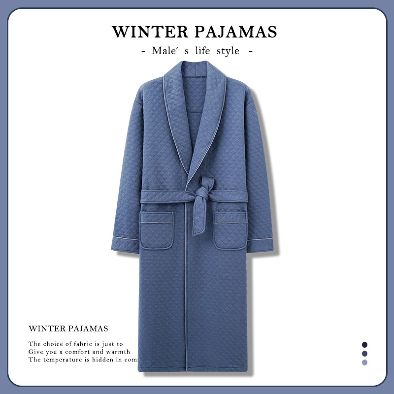 パジャマ男性秋冬長袖綿質カジュアルシンプル厚手浴衣着物空気綿サンドイッチ男性バスローブ