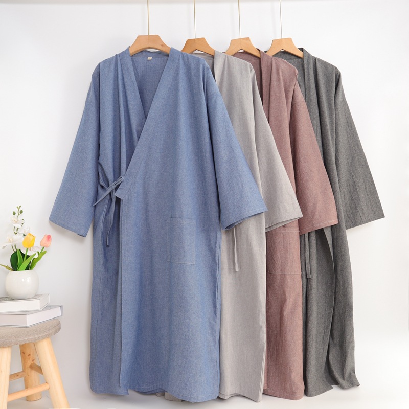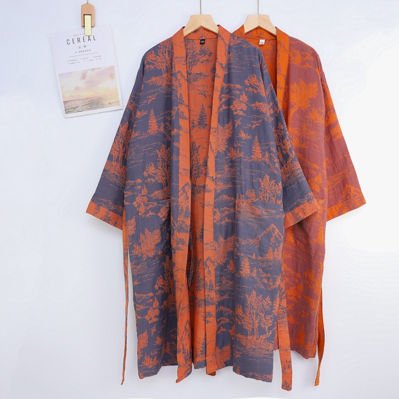 春秋カップル高級色織綿二重ガーゼ寝衣男中長タイプ国風カーディガン和風浴衣バスローブ
