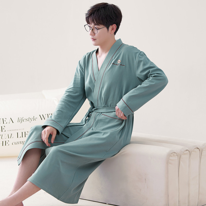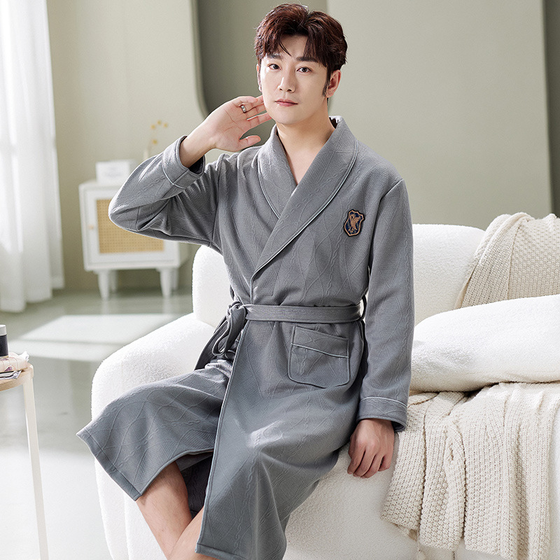 ナイトウェア男性用純綿バスローブ純綿長袖男性用秋冬帯男性用パジャマ春秋モデル2025新作
