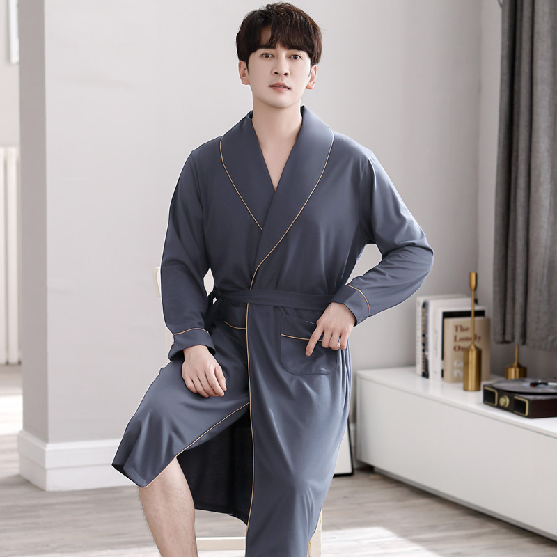 男性の寝衣春と秋のモーダル長袖パジャマの中の長い夏のエアコン服の新型の大きいサイズのホテルのバスローブ